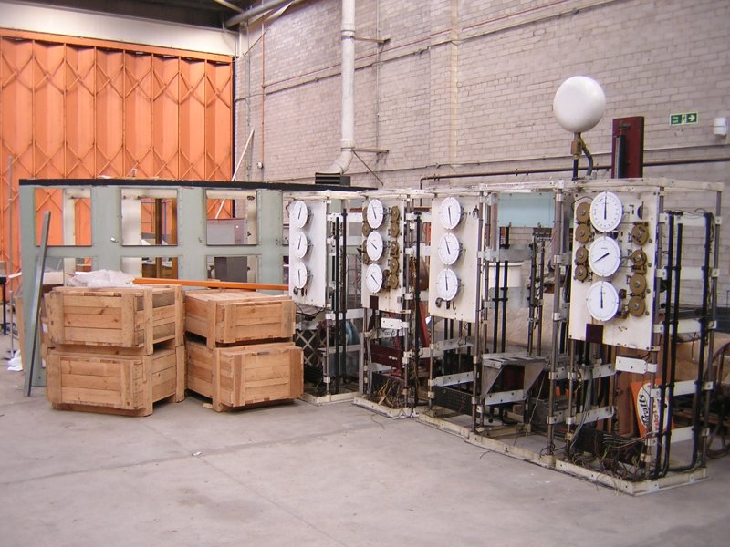 When we went to collect the Mark V, we also had a look at the rest of the items that we have in storage. This includes the Argus 100 computer which controlled the telescope before the Vax system was put in, and the old repeaters - a set of dials which used to sit in the control room and would tell the controller the position of the Lovell telescope (see above). Hopefully, when we have a new, larger visitor centre, some of this stuff might eventually go on display.