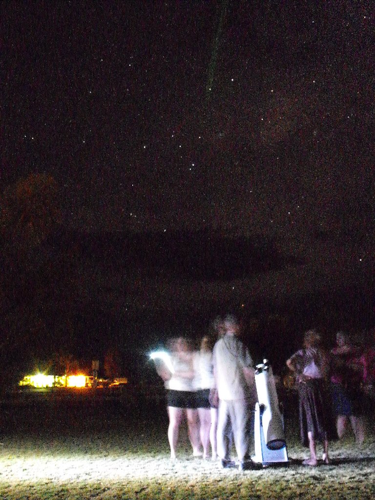 After a warm, partially cloudy day, the skies became cloudier as the afternoon wore on. By the time we'd finished dinner in the pub, the cloud had set in once again. We went down to the oval and set up anyway, hoping that we might be lucky. As it turned out, we were. While the kids were playing basketball on the nearby courts, we set up and tried to catch Jupiter through the odd gap as the Sun went down. A lot of the kids did get to see it, but the sky was too cloudy to see much else. By the time it cleared up a bit, most of the kids had left. We did however manage to show M31, 47 Tuc and Omega Cen to a family and a couple of teachers who turned up after most of the kids had left.