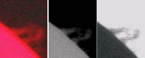 Here a some pics of the sun done in h-alpha, I used the solarview 50 with a canon eos 300 digital camera attached. On some I have removed the colour and reversed black and white.